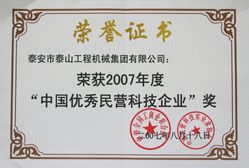 中国优秀民营科技企业荣誉证书